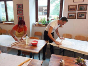 Nakon šetnje uslijedila je zajednička priprema večere – razvijanje janjske pite uz mentorstvo domaćice, kao i prezentacija postupka proizvodnje domaćeg piva Varcar, demontracija i degustacija istog.